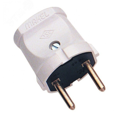Вилка электрич. без заземл. бел. MAKEL 10001 – электроустановочный аксессуар, устройство для подключения к сети, промышленного применения.