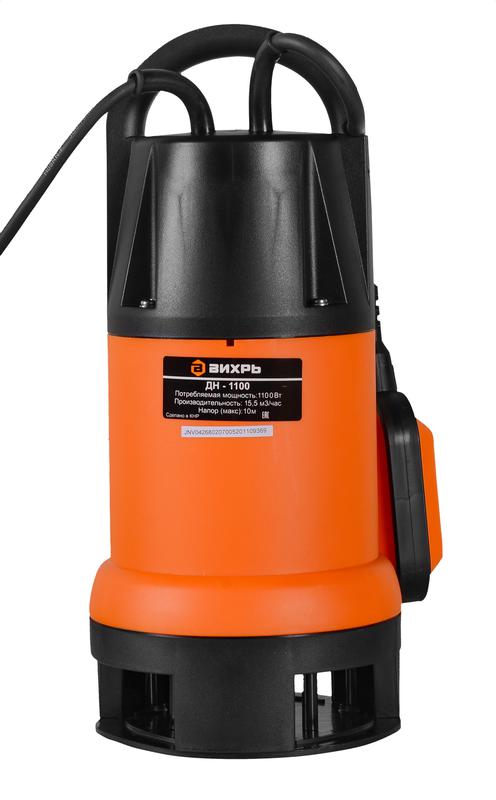 ПОПЛАВКОВЫЙ ВЫКЛЮЧАТЕЛЬ - Внешний Дренажный насос ВИХРЬ ДН-1100 предназначен для откачивания и отведении воды и стоков с инородными примесями из различных водоёмов и резервуаров (котлованов, шахт, сливных ям и т.д). С их помощью можно выкачивать воду в случае подтопления жилых помещений и подвалов. Электродвигатель насоса асинхронный, однофазный с короткозамкнутым ротором. Максимальная