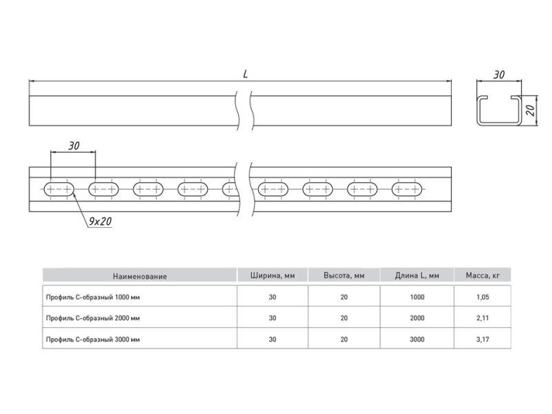 Профиль С-образный L3000 1.5мм EKF cp3000