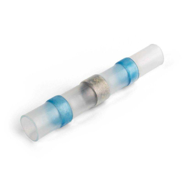 • по краям соединителя на внутренней поверхности термоусаживаемой трубки интегрированы цветные пояски термоплавкого клея, обеспечивающие полную герметичность соединения после усадки