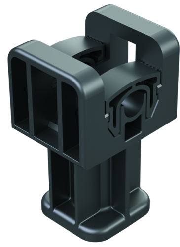 Универсальный держатель используется для крепления круглого (8 мм) или плоского (25 мм) проводника на кровле и фасадах. Конструкция держателя - разборная. Есть возможность резьбовой фиксации, крепления одним винтом. Материал - ПБТ-пластик.